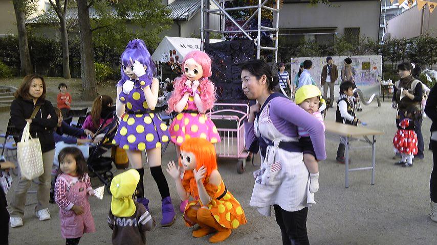 ノリノリの着ぐるみアイドルたち。
